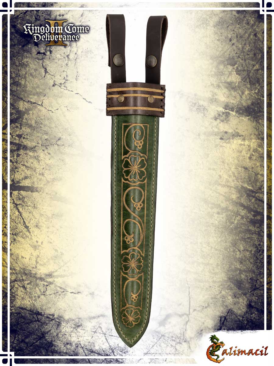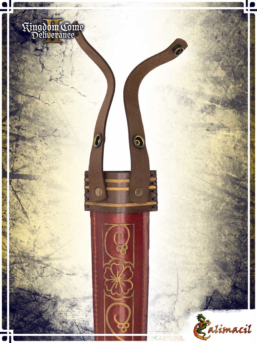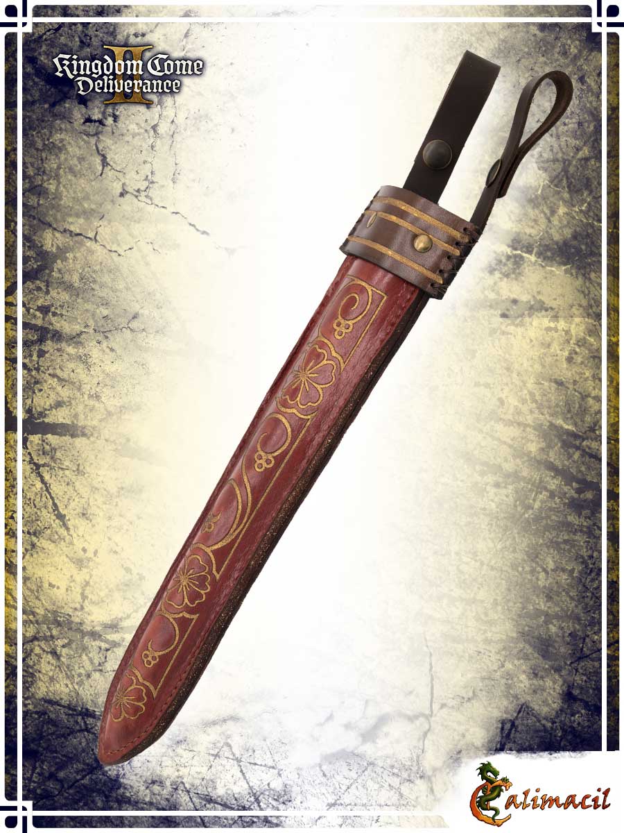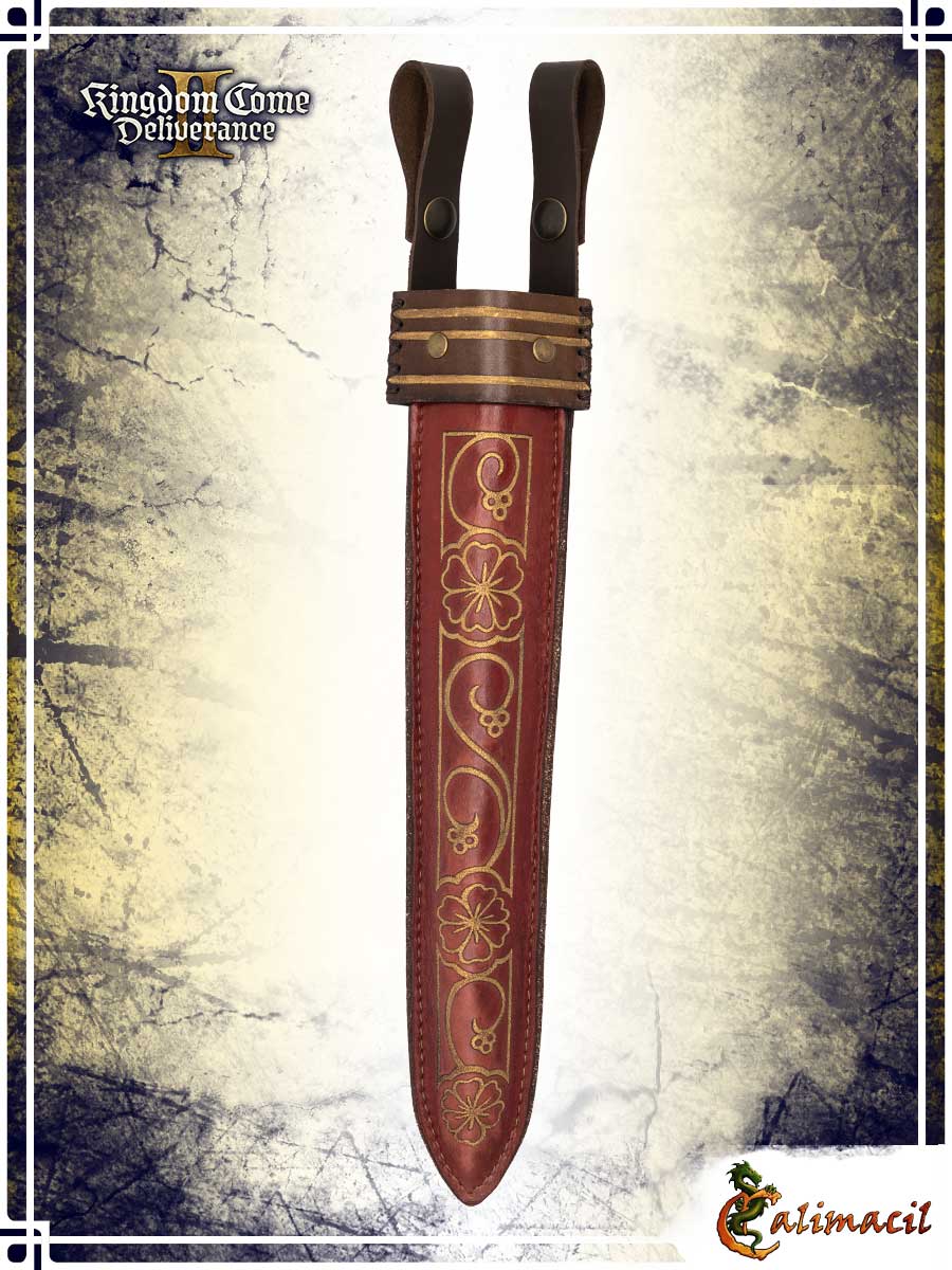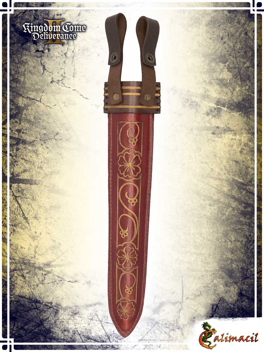 In the troubled lands of Bohemia, every traveler knows the value of a trusty blade kept close at hand. As Henry's journey takes him from humble beginnings to the plots of the nobility, even a simple dagger can tip the scales of fate. The kingdom's craftsmen have fashioned sheaths worthy of such companions, blending sturdy leather with noble designs. This design has become famous for its resilience and the ease with which it could be slipped on before the dawn march or removed after a long night by the campfire, symbolizing the resolve of those who seek truth in a divided kingdom.