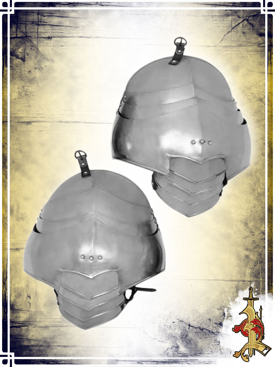 - Attachment: Leather strap and buckle (attaches to a gorget)