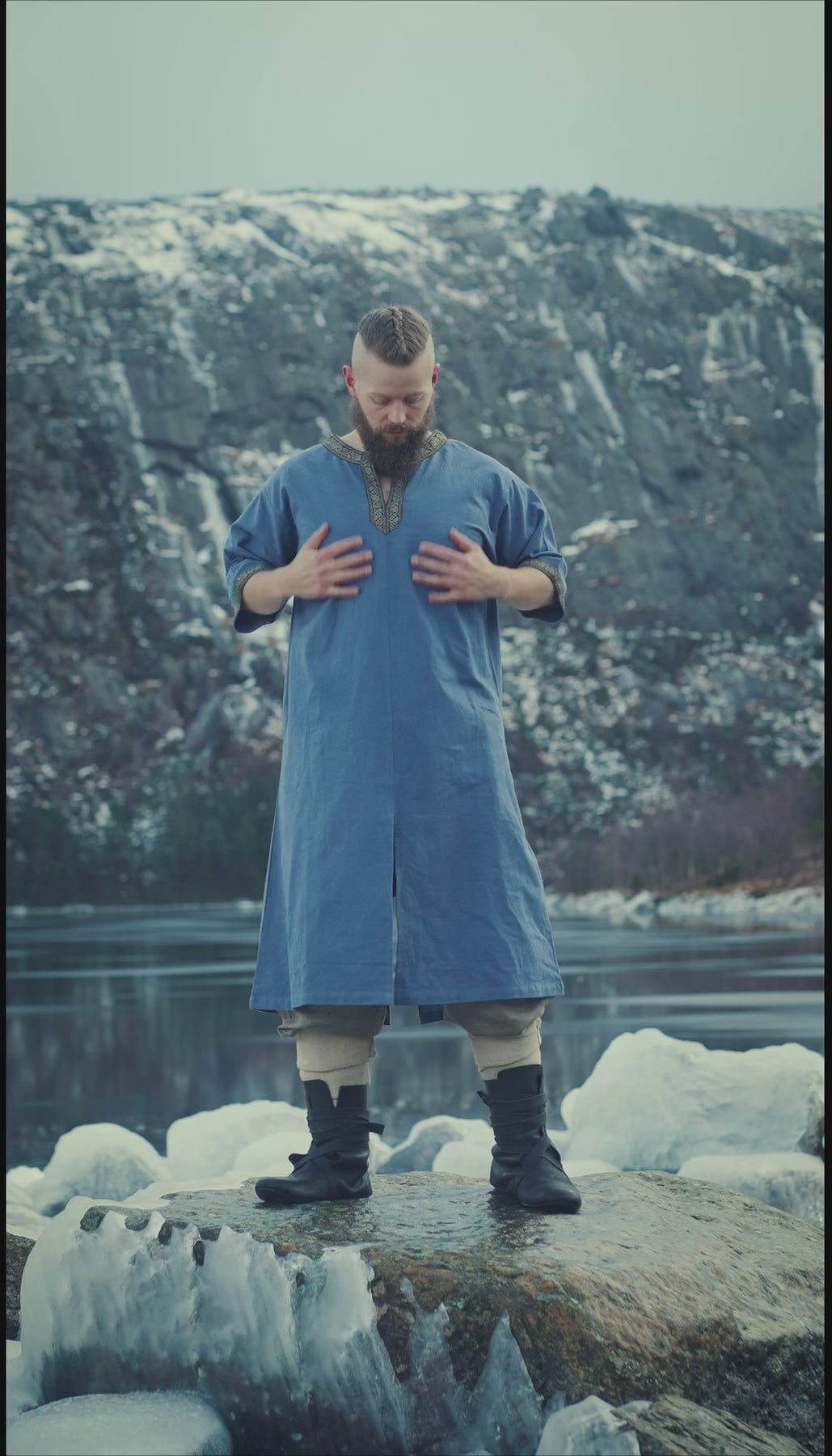 Le cœur d'Olaf était aussi vaste que l'horizon sans fin, et son esprit aussi résistant que les chênes robustes qui parsèment le littoral. Mais au milieu des épreuves de la vie quotidienne, c'est sa tunique qui lui apportait le plus grand réconfort. Cousue de ses propres mains à partir de la laine la plus douce des moutons du village et ornée de bordures teintées aux couleurs du soleil couchant, la tunique d'Olaf était plus qu'un simple vêtement ; elle était le reflet de son essence. Ses plis amples se drapent sur sa carrure comme une douce étreinte, lui offrant chaleur dans le froid de l'hiver et liberté dans la chaleur de l'été. Qu'il s'occupe de ses récoltes dans les champs dorés ou qu'il partage des rires avec ses amis autour du foyer, la tunique d'Olaf était son fidèle compagnon, témoin silencieux des joies et des peines de son voyage.