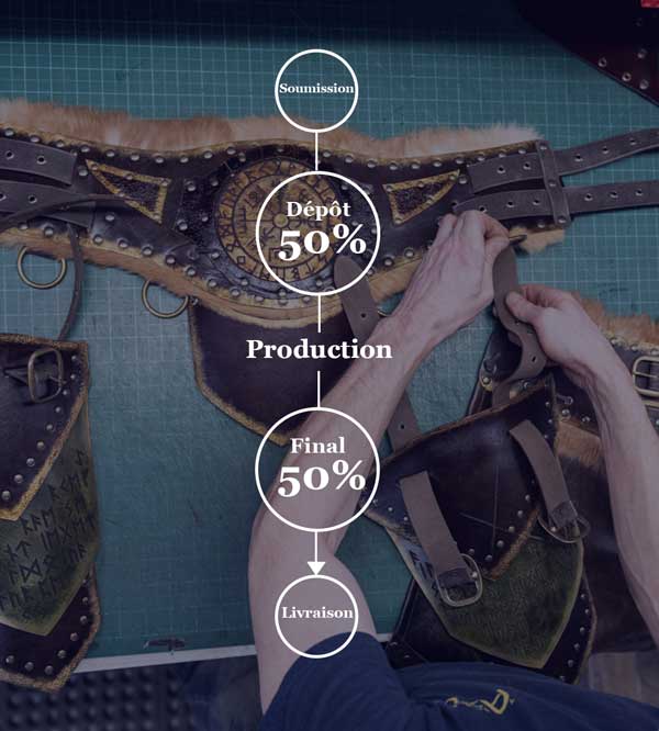 Après des années de travail : Avec des centaines de projets à notre actif, nous avons perfectionné l'art de la conception de costumes de GN. Forts de cette expérience, nous sommes fiers de vous présenter nos produits personnalisables. Prenez le contrôle en sélectionnant les pièces, les couleurs et les détails qui correspondent le mieux à votre vision.